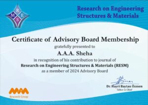 يعمل كمحكم دولى للأبحاث العلمية فى خمس مجلا ت هندسية عالمية .